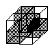Построим теперь куб с ребром 2, удовлетворяющий условию задачи. Для этого нижний слой 2×2 уложим в шахматном порядке, а верхний – также в шахматном порядке, но с противоположной раскраской (см. рис.). Любой куб с чётной длиной ребра, удовлетворяющий условию, можно собрать из таких кубиков с ребром 2, прикладывая их друг к другу гранями с одинаковой раскраской.