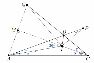Решение 1: Заметим, что ∠ABQ = ∠CBP = ∠ABI = ∠CBI = 60°.