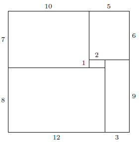 Например, из прямоугольников 1×2, 7×10, 6×5, 8×12 и 9×3 можно составить квадрат 15×15 (см. рис.).