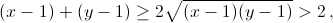 Решение 1:Пустьxиy– данные числа. Условие x + y < xy можно переписать в виде (x– 1)(y– 1) > 1, откуда очевидно, что x> 1, y> 1. Согласно неравенству Коши