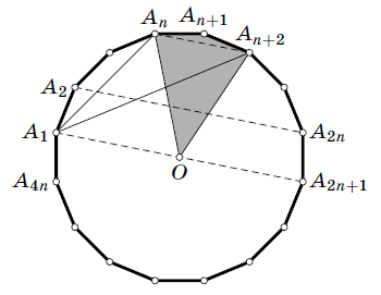 В силу равенства дуг A1An и An+2A2n+1 описанной окружности A1A2n+1 || AnAn+2. Значит, площади треугольников A1AnAn+2 и OAnAn +2 равны. Отсюда SA1AnAn+1An+2 = SOAnAn+1An+2 = S/2n .