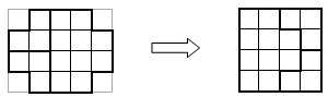 Разрежьте фигуру, полученную из прямоугольника 4×5 вырезанием четырёх угловых клеток 1×1, на три части, не являющиеся квадратами, так, чтобы из этих частей можно было сложить квадрат.