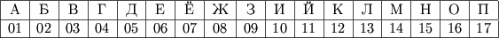 Каждую букву исходного сообщения заменили её двузначным порядковым номером в русском алфавите согласно таблице: