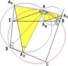 Точки A1 и A4 лежат на окружности с диаметром AB, а точки A1 и A1 – на окружности с диаметром AD. Поэтому ∠AA1A4 = ∠ABE = ∠ADE = ∠AA2A3,