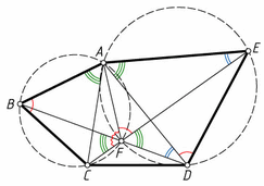 Докажите, что если в выпуклом пятиугольнике ABCDE ABC = ∠ADE и ∠AEC = ∠ADB, то ∠BAC = ∠DAE.