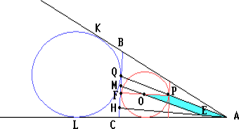 Пусть F — точка касания вписанной окружности треугольника ABC со стороной BC. Рассмотрим окружность S, касающуюся стороны BC треугольника ABC в точке Q, а продолжений сторон AB и AC — в точках K и L соответственно (вневписанная окружность треугольника ABC). Тогда, если p — полупериметр треугольника ABC, то