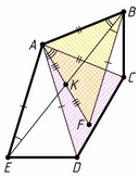 Отложим на продолжении медианы AK за точку K отрезок KF, равный AK. Из равенства треугольников BKF и EKA следует, что BF = AE = AD и