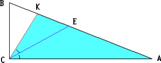 Решение 1:Пусть ∠A = α. Тогда ∠ACK = 90° – α, ∠ECK = ∠ACE = 45° – α/2, ∠KCB = α, ∠CEB = ∠A + ∠ACE = α + 45° – α/2 = 45° + α/2,
