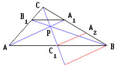 Пусть $A_2$ – середина отрезка $A_1B$. Тогда $C_1A_2$ – средняя линия треугольника $ABA_1$, и, следовательно, $A_1P || C_1A_2$. Тогда из теоремы Фалеса $CA_1 : A_1A_2 = CP : PC_1$, и, поскольку $A_1B = 2A_1A_2$, справедливо $CA_1 : A_1B = CP : 2 PC_1$. Аналогично, $CB_1 : B_1A = CP : 2 PC_1.$ Поэтому $CB_1 : B_1A = CA_1 : A_1B$. Следовательно, $A_1B_1 || AB$.