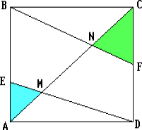 Заметим, что ∠NCF = ∠EAM = 45°. Первый способ. Из подобия треугольников CNF и ANB следует, что CN = 1/3 AC, а из подобия треугольников CMD и AME – AM = ¼ AC.