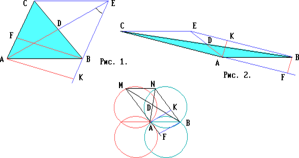 Пусть M — произвольная точка одной из этих окружностей, отличная от их точки пересечения. При параллельном переносе на вектор $\overrightarrow{AB}$ точка M переходит в некоторую точку N одной из окружностей S1 или S2. Если AD — медиана треугольника ABM, BF — его высота, K — проекция точки A на прямую NB, а $\angle$ANB = 30o, то