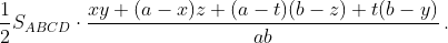 Тогда ½ SABCD = SAML + SBMN + SCNK + SDKL = x/a·y/b SABD + a–x/a·z/b SABC + a–t/a·b–z/b SBCD + t/a·b–y/b SACD =