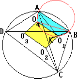 $\displaystyle \angle$O4O1K = 180o - $\displaystyle \angle$O4O1B = $\displaystyle \angle$O4AB = $\displaystyle {\textstyle\frac{1}{2}}$$\displaystyle \angle$BAD