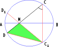 Точка M лежит на диаметре AB окружности. Хорда CD окружности проходит через точку M и пересекает прямую AB под углом в 45°.