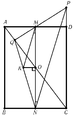 Пусть прямая, проходящая через центр O данного прямоугольника параллельно BC, пересекает отрезок QN в точке K (см. рис.). Так как MO || PC, то