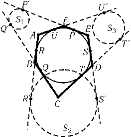 Построим окружность S1, касающуюся прямых BCи EFв точках Q'и P'. Аналогично построим окружности S2и S3.