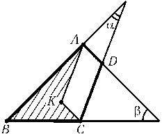 ABCD — выпуклый четырехугольник площади S. Угол между прямыми ABи CDравен a, угол между ADи BCравен $\beta$. Докажите, что