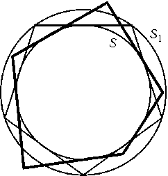 а) Пусть неправильныйn-угольник описан около окружности S. Опишем около этой окружности правильныйn-угольник, а около него опишем окружность S1(рис.). Докажем, что площадь части неправильногоn-угольника, заключенной внутри S1, больше площади правильногоn-угольника. Все касательные к Sотсекают от S1равные сегменты. Поэтому сумма площадей сегментов, отсекаемых от S1сторонами правильногоn-угольника, равна сумме площадей сегментов, отсекаемых от S1сторонами неправильногоn-угольника или их продолжениями. Но для правильногоn-угольника эти сегменты не пересекаются (точнее говоря, не имеют общих внутренних точек), а для неправильногоn-угольника некоторые из них обязательно перекрываются, поэтому площадь объединения этих сегментов для правильногоn-угольника больше, чем для неправильного. Следовательно, площадь части неправильногоn-угольника, заключенной внутри окружности S1, больше площади правильногоn-угольника, а площадь всего неправильногоn-угольника и подавно больше площади правильного. б) Эта задача следует из а), так как периметр многоугольника, описанного около окружности радиуса R, равен 2S/R, где S — площадь многоугольника.