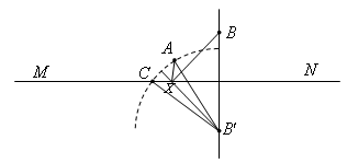Первый способ. Предположим, что точка X построена. Пусть B' – точка, симметричная точке B относительно прямой MN; окружность радиуса AB' с центром B' пересекает прямую MN в точке C (из двух точек пересечения выбираем лежащую от прямой BB' по ту же сторону, что и точка A). Тогда луч B'X является биссектрисой угла AB'A'. Следовательно, X – точка пересечения прямых MN и B'K, где K – середина отрезка AC.