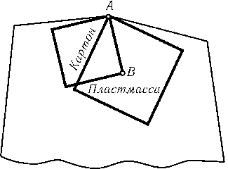 Предположим, что есть картонные квадраты, не совпадающие с пластмассовыми. Выбросим из рассмотрения все совпадающие квадраты и рассмотрим выпуклую оболочку вершин оставшихся квадратов. Пусть A — вершина этой выпуклой оболочки. Тогда Aявляется вершиной двух разных квадратов — картонного и пластмассового. Легко проверить, что одна из вершин меньшего из этих квадратов лежит внутри большего (рис.). Пусть для определенности вершина Bкартонного квадрата лежит внутри пластмассового. Тогда точка Bлежит внутри пластмассового квадрата и является вершиной другого пластмассового квадрата, чего не может быть. Получено противоречие, поэтому каждый картонный квадрат совпадает с некоторым пластмассовым.