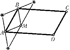 - Выпуклая оболочка является параллелограммомABCD. Если точка Mлежит внутри параллелограммаABCD, то вершины всех трех параллелограммов с вершинами A,Bи Mлежат внеABCD(рис.). Значит, в этом случае, кроме точек A,B,Cи D, никаких других точек быть не может.