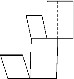 Рассмотрим выпуклый многоугольникA1...An. Докажем, что каждое из свойств 1 и 2 эквивалентно свойству 3: "Для любого вектора$\overrightarrow{A_iA_{i+1}}$найдется вектор$\overrightarrow{A_jA_{j+1}}$= -$\overrightarrow{A_iA_{i+1}}$." Ясно, что из свойства 1 следует свойство 3. Докажем, что из свойства 3 следует свойство 1. Если выпуклый многоугольникA1...Anобладает свойством 3, тоn= 2mи $\overrightarrow{A_iA_{i+1}}$= -$\overrightarrow{A_{m+i}A_{m+i+1}}$. Пусть Oi — середина отрезкаAiAm + i. Так какAiAi + 1Am + iAm + i + 1 — параллелограмм, тоOi=Oi + 1. Поэтому все точки Oiсовпадают, и эта точка является центром симметрии многоугольника. Докажем, что из свойства 2 следует свойство 3. Пусть выпуклый многоугольник Fразрезан на параллелограммы. Нужно доказать, что для любой стороны многоугольника Fнайдется другая сторона, параллельная и равная ей. От каждой стороны многоугольника Fотходит цепочка параллелограммов, т. е. эта сторона как бы перемещается по ним параллельно, причем она может разбиваться на несколько частей (рис.). Так как у выпуклого многоугольника может быть еще только одна сторона, параллельная данной, то все разветвления цепочки упираются в одну и ту же сторону, причем ее длина не меньше длины стороны, из которой цепочка выходит. Мы можем выпустить цепочку параллелограммов как из первой стороны во вторую, так и из второй в первую, поэтому длины этих сторон равны. Остается доказать, что из свойства 3 следует свойство 2. Способ разрезания многоугольника с равными и параллельными противоположными сторонами указан на рис. После каждой такой операции получаем многоугольник с меньшим числом сторон, по-прежнему обладающий свойством 3, и проделываем с ним то же самое, пока не придем к параллелограмму.