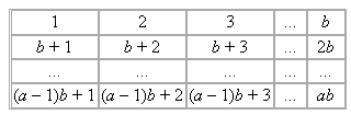 Для взаимно простых a и b рассмотрим таблицу