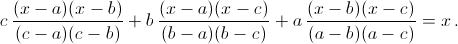 Слева стоит многочлен степени не выше 2. Но уравнение имеет по крайней мере 3 корня – a, b и c (эти числа различны, иначе уравнение не имеет смысла). Следовательно, разность левой и правой части тождественно равна нулю.