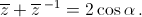 то есть z – действительное число, либо |z| = 1. Первый случай возможен только при z = ± 1 (иначе |z + z–1| > 2 ≥ 2 cos α). Во втором случае