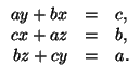 2) Если a = b = 0, то и с = 0, а x, y, z – любые числа.