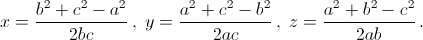 2bcx = c² + b² – a². Аналогично находятся y и z.
