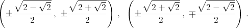 (± sin π/8, ± cos π/8), (± sin 5π/8, ± cos 5π/8), или
