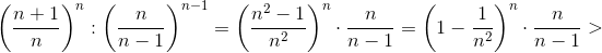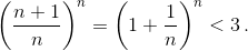 Правое неравенство доказывается аналогично с использованием очевидного неравенства (1 + 1/n)n > 2 при n > 1. в) Заметим, что последовательность (1 + 1/n)n возрастает. Действительно,