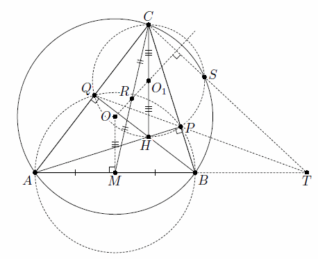 Решение 1: Пусть H – ортоцентр треугольника, O1 – середина CH (см. рис.).