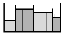 Рассмотрим все прямоугольники разбиения, прилегающие к нижней стороне квадрата; их l штук, ибо горизонтальная прямая, проходящая достаточно близко к этой стороне, пересекает только их. Разобьём их на группы стоящих подряд прямоугольников равной высоты (см. рис. слева). У каждой такой группы верхней границей является один отрезок.