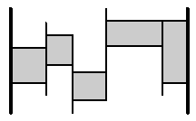 Рассмотрим одну такую группу с верхним отрезком I. Заметим, что вертикальные отрезки, ограничивающие эту группу, продолжаются выше, чем I. Действительно, иначе, скажем, верхний конец левого вертикального отрезка J лежит на I; тогда справа к J примыкает один прямоугольник, а слева – больше одного (ибо J – граничный для группы). Как показано выше, это невозможно.