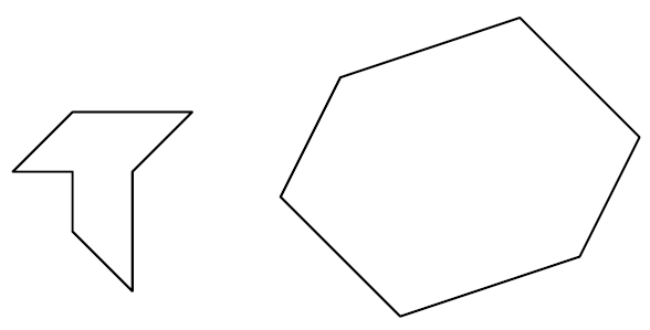 Предложенные вам четыре одинаковые фигуры (рис. слева) требуется уложить в шестиугольник (рис. справа) так, чтобы они не выступали за его границы и не накладывались друг на друга (даже частично).