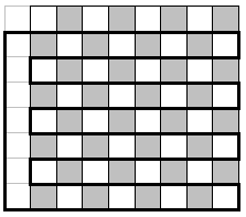 Покажем, как отгадать цвет точки за два вопроса. Построим ломаную, внутрь которой попадут все нечётные горизонтали квадрата и только они (см. рис.).