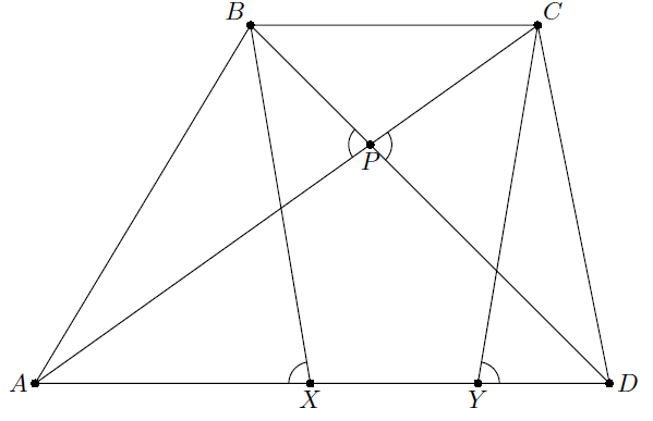 Из условия следует, что ∠BXA = ∠BPA = ∠CPD = ∠CYD (см. рис.). Значит, трапеция BXYC равнобокая, что равносильно утверждению задачи.