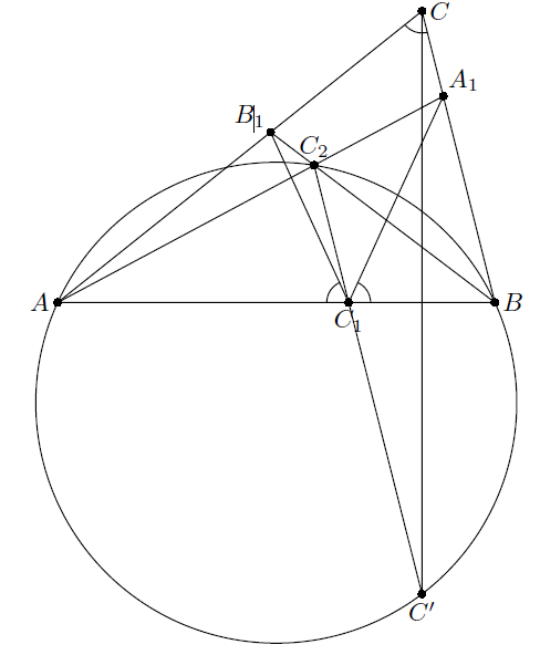 ∠AC2B = π – ∠C, то есть C2 лежит на окружности, проходящей через A, B и точку C’, симметричную C относительно AB. При этом