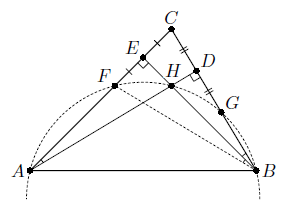 Пусть ∠FAH = ∠HBF = α. Прямоугольные треугольники ADC и ECB имеют общий угол C, поэтому ∠EBC = α.