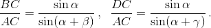 2) ∠BAC = ∠BCA = α, ∠DAC = β, ∠DCA = γ. Тогда AB = BC. По теореме синусов