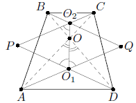 Рассмотрим ромб PO1QO2 из условия задачи. В нём ∠PO1O2 = ∠QO1O2, а значит, ∠DO1O = ∠AO1O. Следовательно, треугольники AOO1 и DOO1 равны по стороне (O1O – общая) и двум прилежащим углам, откуда AO = DO. Отсюда ∠OAD = ∠ODA, и четырёхугольник ABCD симметричен относительно серединного перпендикуляра к AD. Поэтому AB = CD.