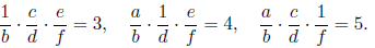 , где a, b, c, d, e, f – натуральные числа. Если число a увеличить на 1, то значение этого выражения увеличится на 3. Если в исходном выражении увеличить число c на 1, то его значение увеличится на 4; если же в исходном выражении увеличить число e на 1, то его значение увеличится на 5. Какое наименьшее значение может иметь произведение bdf?
