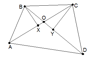 Решение 1:Пусть Петя приходит в вершину B в то же время, когда Вася проходит точку X диагонали AC, а в вершину C, когда Толя проходит точку Y диагонали BD. Тогда
