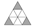 Разобьём треугольник на 9 равносторонних треугольников (см. рис.). Загнём "внутрь" части, отмеченные цветом, и получим шестиугольник.