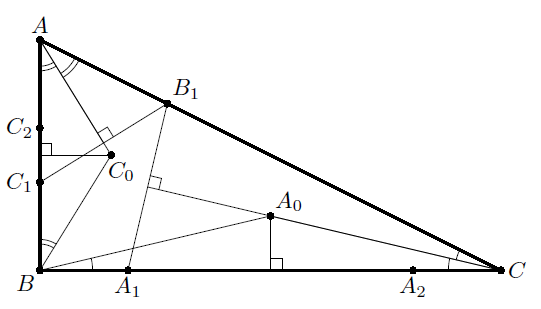 ∠ABC0 = ½ ∠A, и, значит, ∠A0BC0 = ∠B – ½ (∠C + ∠A) = 45°.