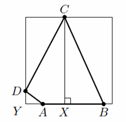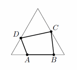 Мы покажем, что ABCD можно вписать либо в квадрат, либо в правильный треугольник. Пусть угол A – наибольший угол четырёхугольника ABCD, а ∠B ≥ ∠D. Возможны несколько случаев.