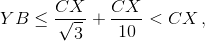 XB = CX ctg∠B ≤ CX/10, и