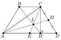 В трапеции ABCD BC < AD, AB = CD, K – середина AD, M – середина CD, CH – высота.